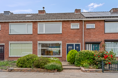 De achtertuin is strak en onderhoudsvriendelijk aangelegd met een terras direct aan huis, een keurig gazon, een stenen berging en nette erfafscheidingen. Dankzij het elektrische rolluik aan de achtergevel kunt u de woonkamer optimaal afsluiten en verduisteren.